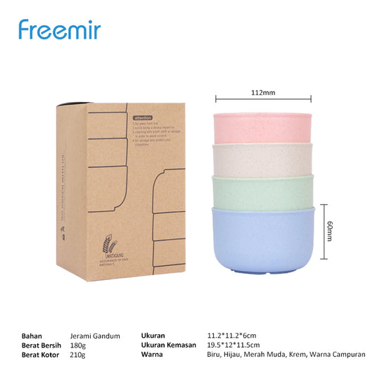 Freemir Paket 1 Lusin – 4 Piring + 4 Gelas + 4 Mangkok Wheatstraw BPA Free PFOA Free Peralatan Dapur Minimalis Jerami Gandum Microwave safe
